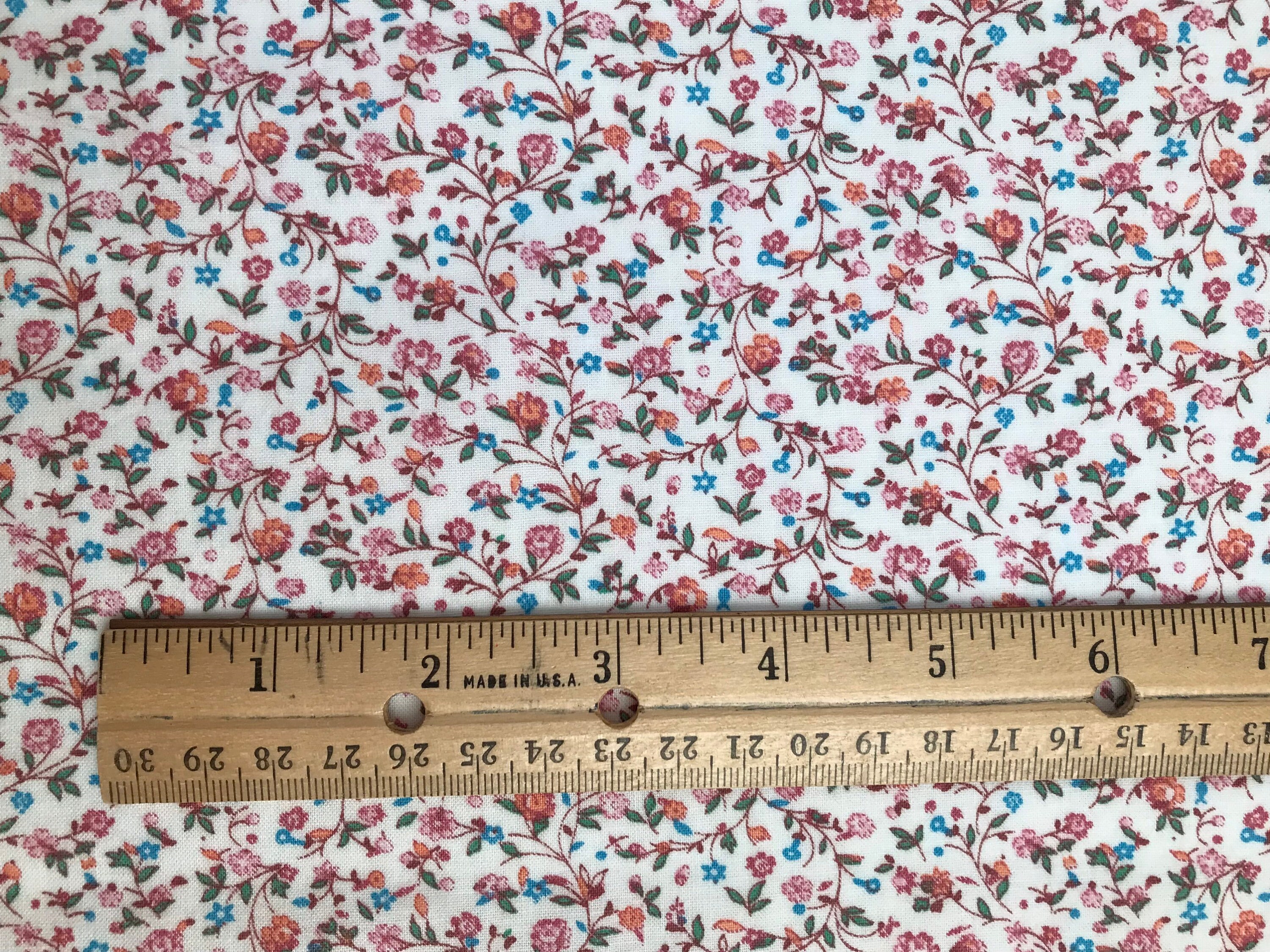 Small Calico Floral Print Fabric Peach Pink Blue Tiny Etsy