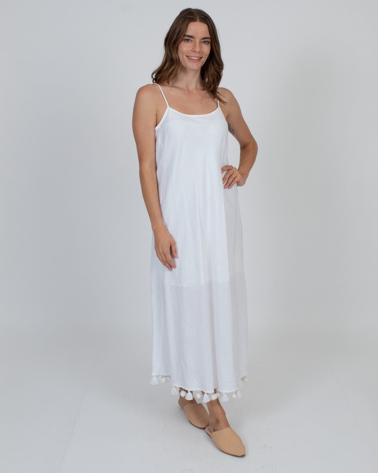 Linen Maxi Dress With Tassel Pom Pom Detail The Revury